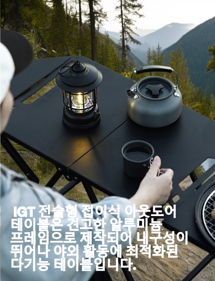 ● IGT 전술형 접이식 아웃도어 테이블은 견고한 알루미늄 프레임으로 제작되어 내구성이 뛰어나 야외 활동에 최적화된 다기능 테이블입니다.