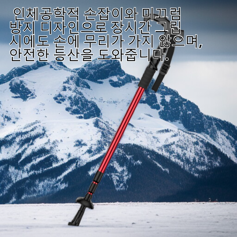 ● 초경량 알루미늄 합금 소재로 제작되어 장시간 사용해도 손목에 부담이 적고, 등산 시 편리하게 휴대할 수 있습니다. ● 4단 조절 기능으로 사용자 신장과 지형에 따라 길이를 자유롭게 조절할 수 있어, 남녀노소 누구나 편안하게 사용할 수 있습니다. ● 인체공학적 손잡이와 미끄럼 방지 디자인으로 장시간 그립 시에도 손에 무리가 가지 않으며, 안전한 등산을 도와줍니다. ● 견고한 알루미늄 합금 구조로 내구성이 뛰어나며, 다양한 기상 및 지형 조건에서도 안심하고 사용할 수 있습니다. ● 콤팩트하게 접을 수 있어 백팩이나 여행 가방에 간편하게 보관할 수 있으며, 야외 활동 시 최고의 동반자가 되어줍니다.